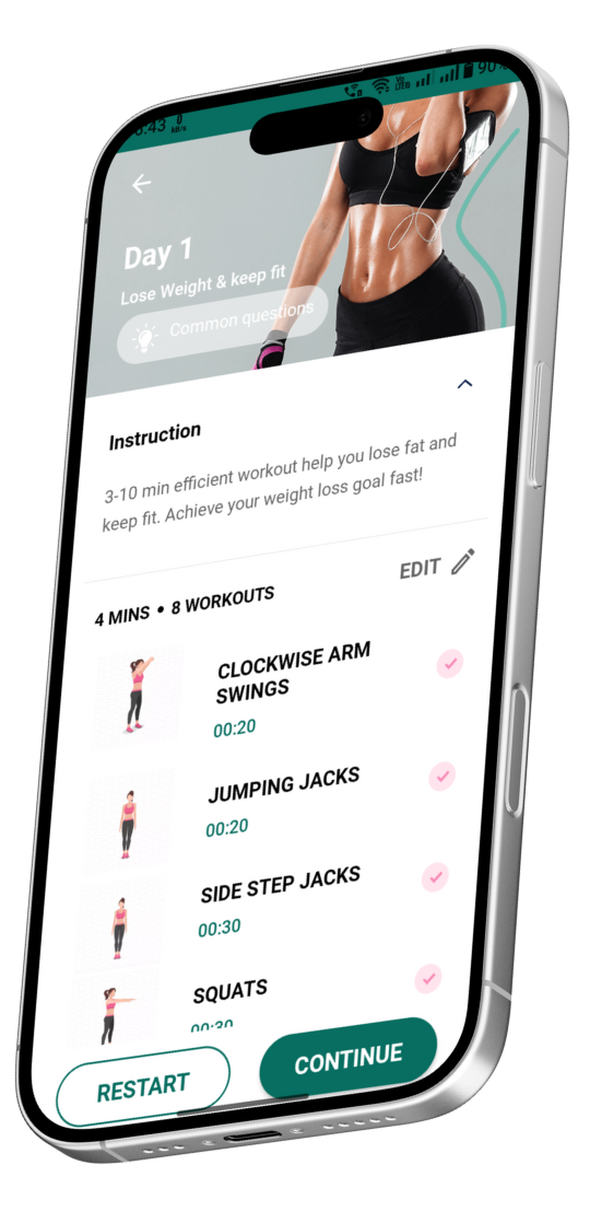 Your all-in-one, at-home fitness trainer—no gym or equipment needed.